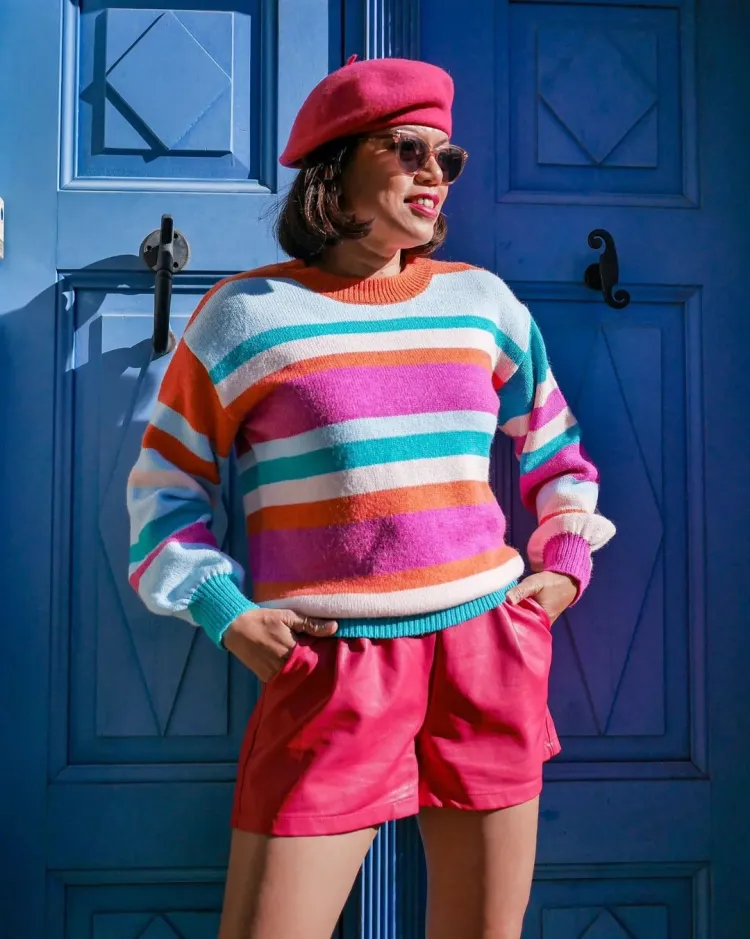 Moonlight Jade Colorblock Contrasting Edge Crewneck Sweater