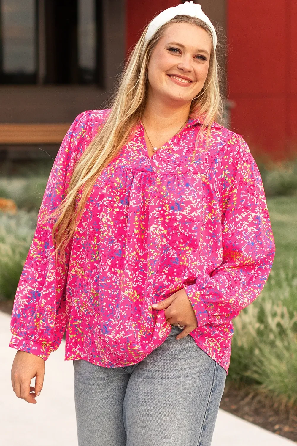 Goat Colorblock Floral Patchwork Flared Sleeve Buttons Henley Top