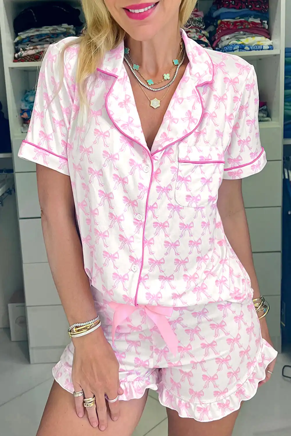 Light Pink Bow Thread Embroidery Ribbed Edge Sweatshirt