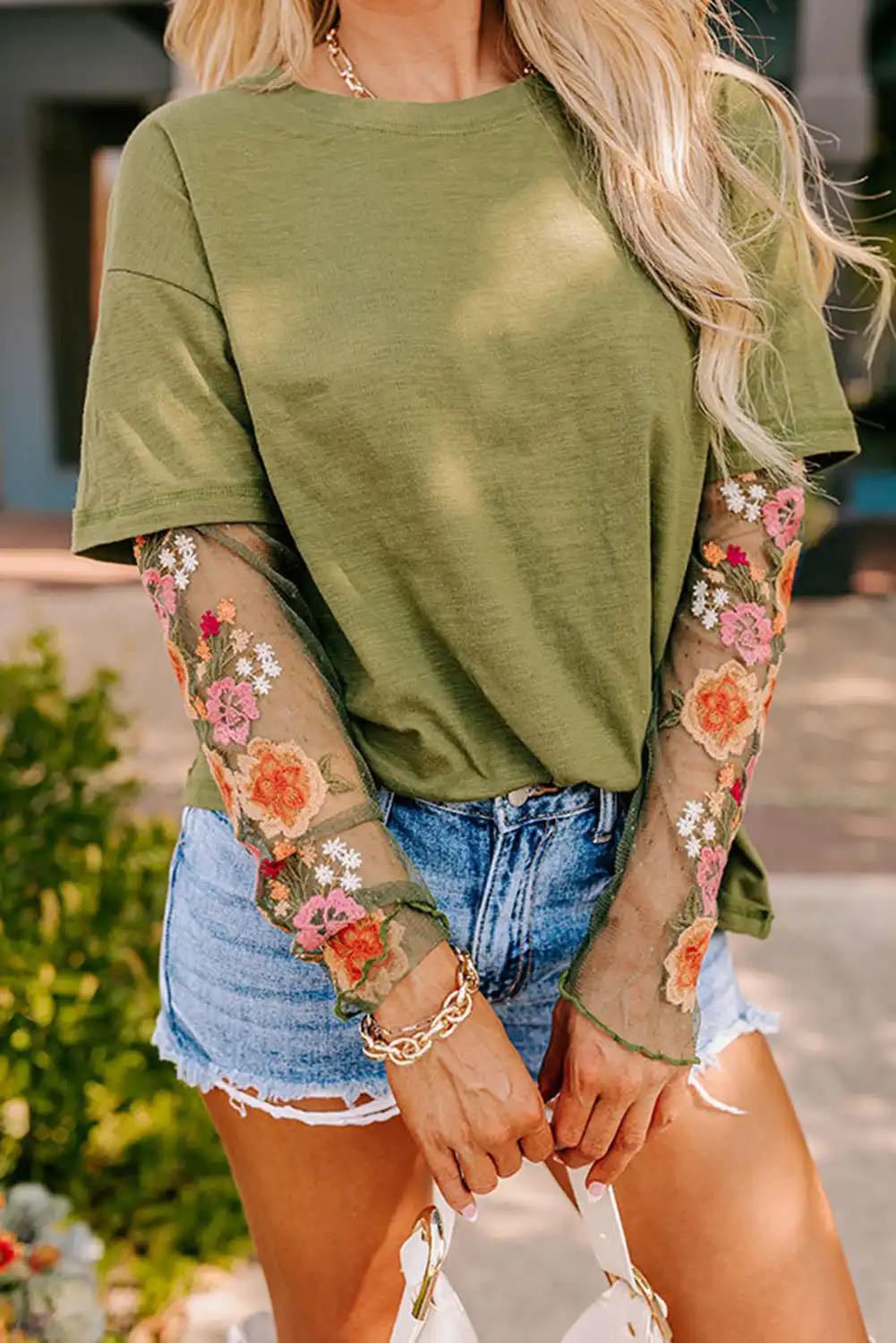 Jet Stream Floral Peace Sign Graphic Drop Shoulder Wide Sleeve Casual Top