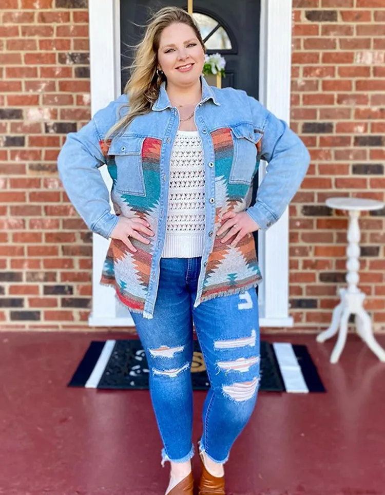 Goat Colorblock Floral Patchwork Flared Sleeve Buttons Henley Top