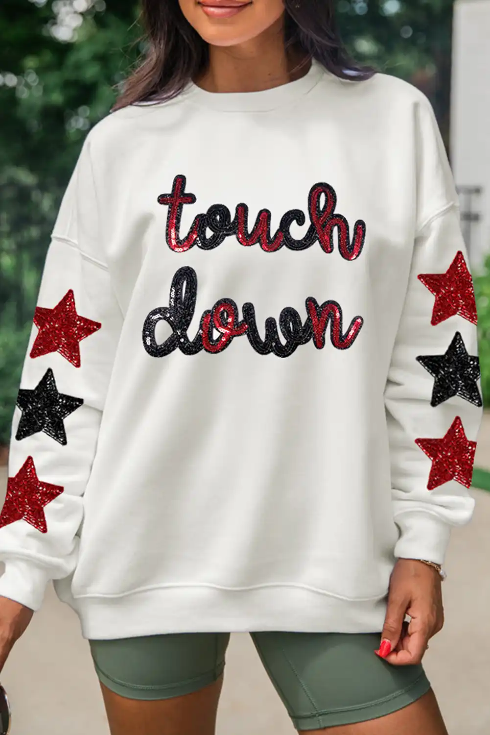 Beau Blue Sequined Bowknot Drop Shoulder Oversized Sweatshirt
